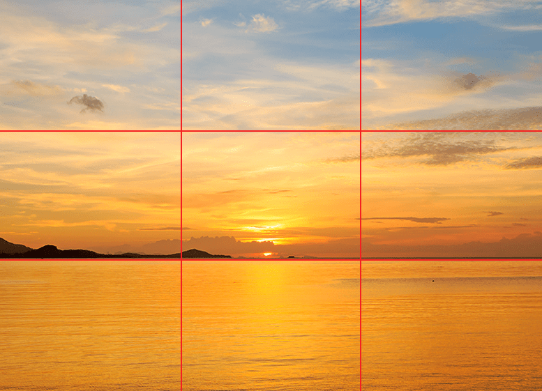 Básicamente consiste en dividir una imagen en nueve partes iguales, utilizando dos líneas horizontales y otras dos verticales, que formarán los nueve rectángulos, y cuatro puntos de intersección.