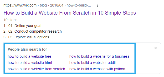 Las cajas de “People also ask” así como las de “People also search for” en Google también proporcionan información sobre el tipo de preguntas que los usuarios hacen con respecto a la palabra clave relevante.