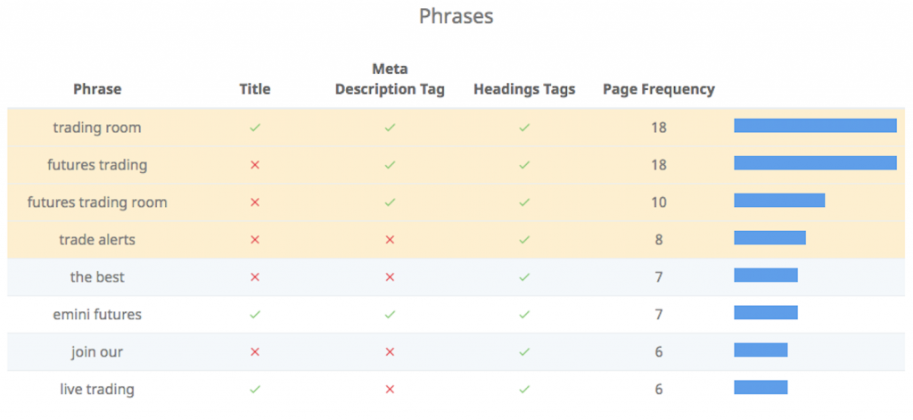 Lo que esto significa es que las palabras clave para las que pretendes posicionarte deben mencionarse en todas las áreas antes mencionadas.