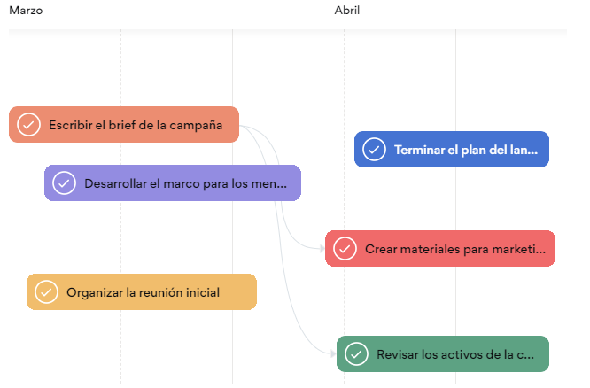 Funciona mejor trabajar hacia atrás para crear tu línea de tiempo. Comienza desde la fecha de publicación final de tu contenido y asegúrate de añadir fechas específicas a todos los pasos del proceso. Esto permite que cada miembro del equipo sepa cuándo debe entregar su parte.