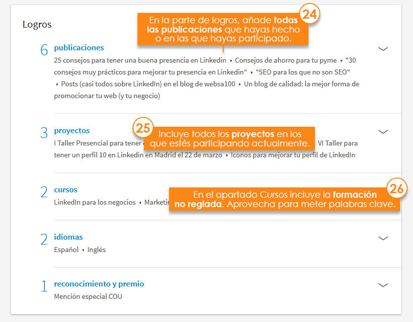 Te parecerá curioso pero es una parte del perfil que valoran mucho los reclutadores. Si quieres trabajar en grandes compañías esta sección, que puede parecer poca cosa, tiene un gran valor: