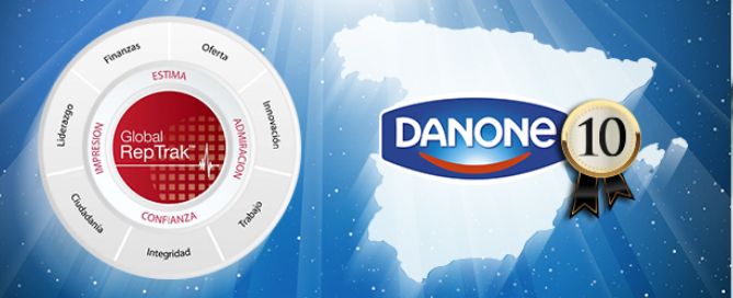 Danone, por segundo año consecutivo, es la empresa con mejor reputación para los consumidores españoles y así, de nuevo en 2014, encabeza la primera posición de la lista. Por detrás de Danone, en el top 10, y en orden descendente se posicionan: Sony, Google, Apple, Michelin, Samsung, Bimbo, BMW, Central Lechera Asturiana y Toyota. Para entender las claves, los consumidores valoran positivamente la oferta y la integridad de Danone, la innovación de Apple y el liderazgo de Google. De este modo, las empresas con alta cuotas de reputación aumentan el porcentaje de personas que comprarían o recomendarían sus productos frente aquellas con niveles más bajos. El 65% de los consumidores encuestados compraría los productos de dichas marcas y el 62 % los recomendaría.
