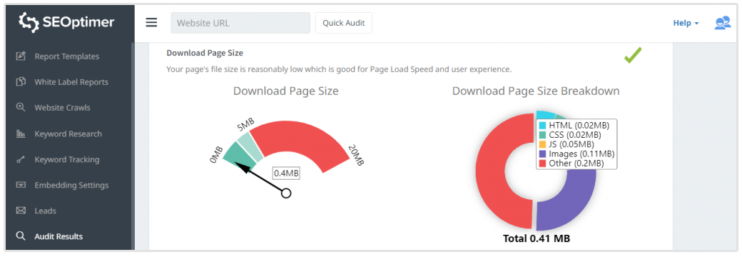 En SEOptimer, intentamos mantener todas nuestras imágenes en nuestro sitio por debajo de 200KB de tamaño para asegurarnos de que las páginas no se ralenticen innecesariamente.