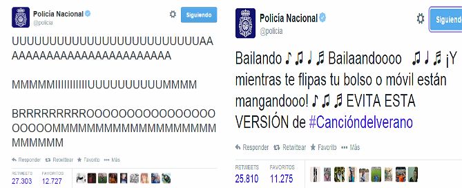 En @policia hay ocho personas que están capacitadas para la gestión de la cuenta en Twitter, pero por motivos de coherencia cuantas menos personas toquen el teclado mejor. Hay dos o tres personas muy importantes para consultar y necesito el criterio policial. No necesito el criterio de comunicación pero si el policial. La cuenta @policia está en activo 16 horas al día patrullando la red de manera constante.