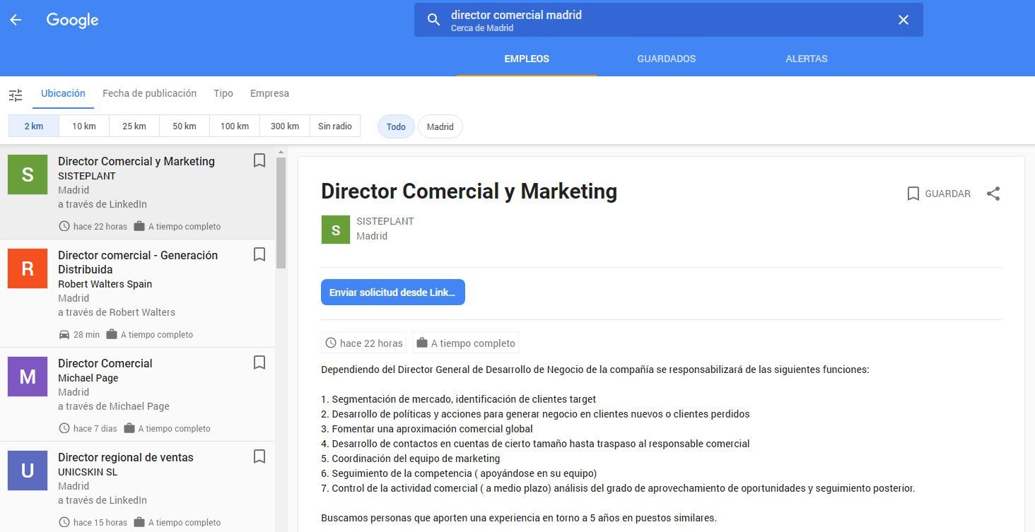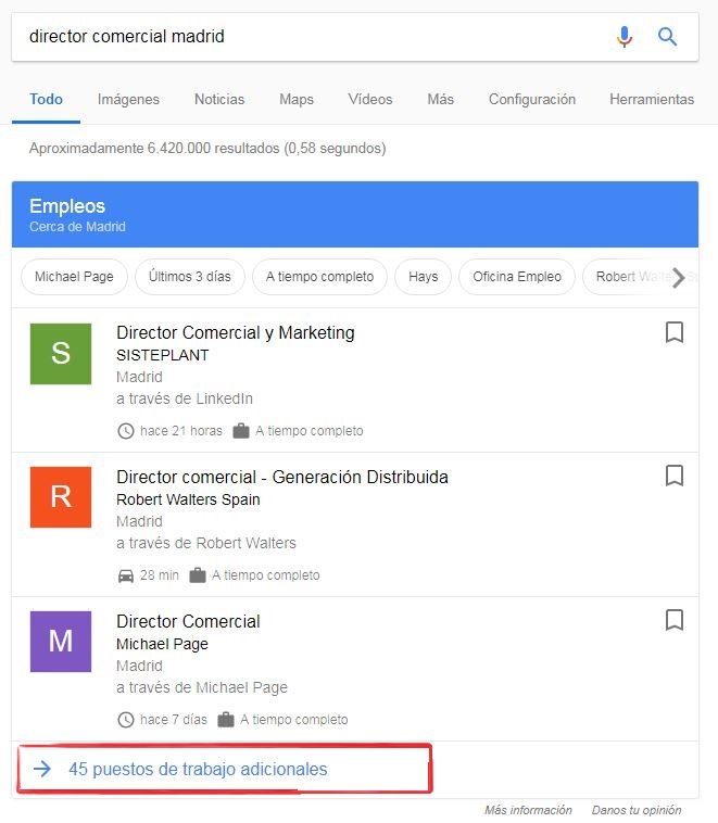Por tanto, se asegura de que usemos su buscador, y no el de las páginas web que ofrecen las ofertas de empleo. Google es sinónimo de SEO, y lo que quiere es asegurarse que domina el posicionamiento de las ofertas de empleo según sus reglas.