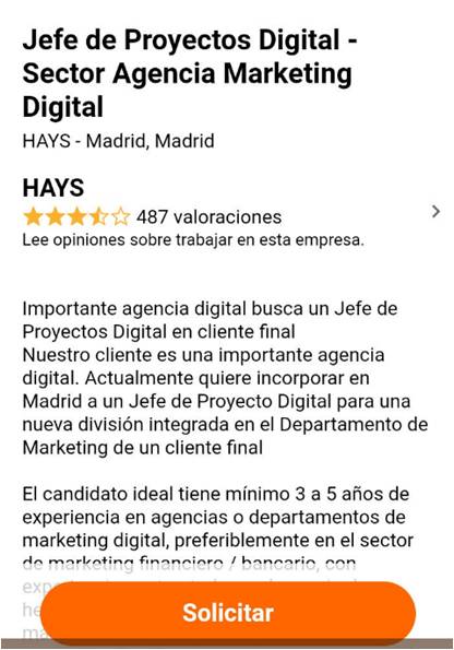 Esta nueva funcionalidad salta siempre que buscamos alguna posición o puesto de trabajo.