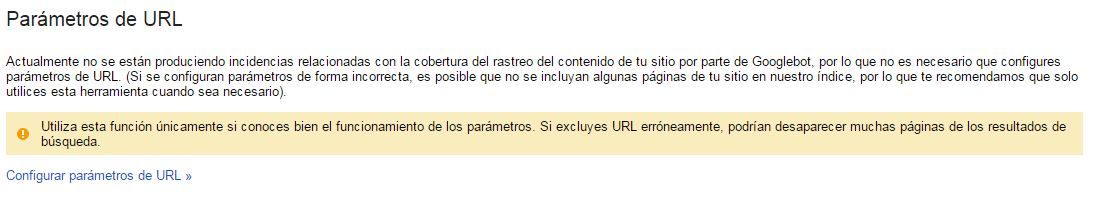 Da miedo ¿eh? Tranquilo, Google tiene razón, si te has currado tu estrategia SEO y no quieres echarla por la borda, mejor ve con cuidado. Normalmente Google Webmaster Tools hace este trabajo de forma automática y te aparecerá un mensaje como el de la imagen. Sin embargo, puede ocurrir que no sea así. Los parámetros de una URL son valores que se añaden en la misma y sirven para mostrar el mismo contenido que en otra URL a través de una ruta diferente. Por ejemplo: