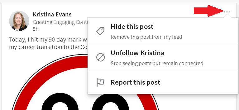Puede ocurrir que lo que publica alguno de tus contactos no sea de tu agrado o te resulte pesado o mil cosas más. Hay una solución sencilla e indolora: deja de seguirle. Listo. LinkedIn NUNCA se lo va a notificar. Seguiréis siendo contacto pero no tendrás que ver sus publicaciones. ¿Cómo se hace? Muy fácil, vas a una publicación cualquiera de esa persona y mira: