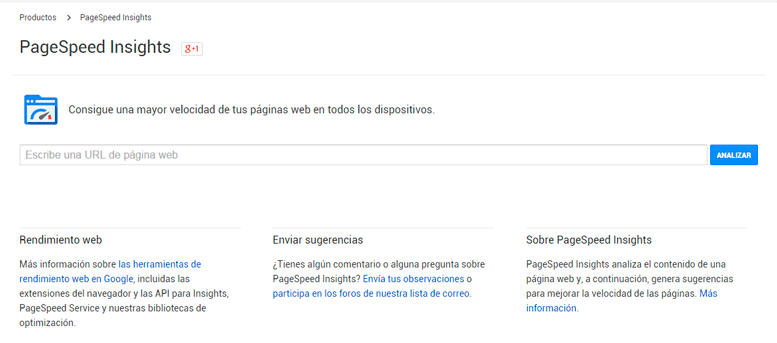 Analiza la velocidad de carga de una página, un factor clave a la hora de analizar tu web. Establece un índice sobre 100 sobre el tiempo de carga en móviles, en ordenadores y la experiencia de usuario, y da consejos sobre cómo mejorar los tiempos de carga. Esta herramienta, junto a otra que examina la velocidad de carga de cada uno de los elementos constituyentes de una página, tal como Pingdom, permiten analizar tu web, viendo qué elementos son los que más ralentizan tu web, pudiendo optimizarlos, modificarlos o cambiarlos.