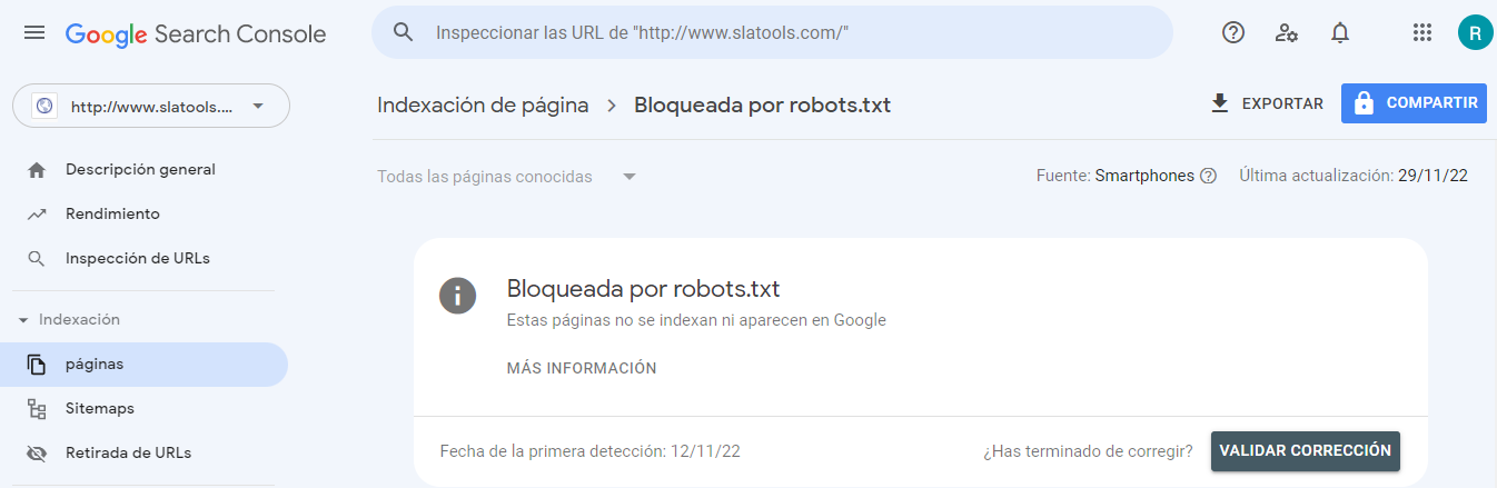 Si has recibido una notificación de Google Search Console (GSC), debes identificar las páginas o URL específicas.