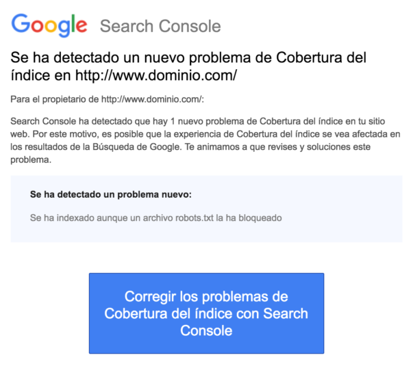 ‘Se ha indexado aunque un archivo robots.txt la ha bloqueado’ indica que Google ha encontrado tu página, pero también ha encontrado una instrucción para ignorarla en tu archivo robots (lo que significa que no aparecerá en los resultados).