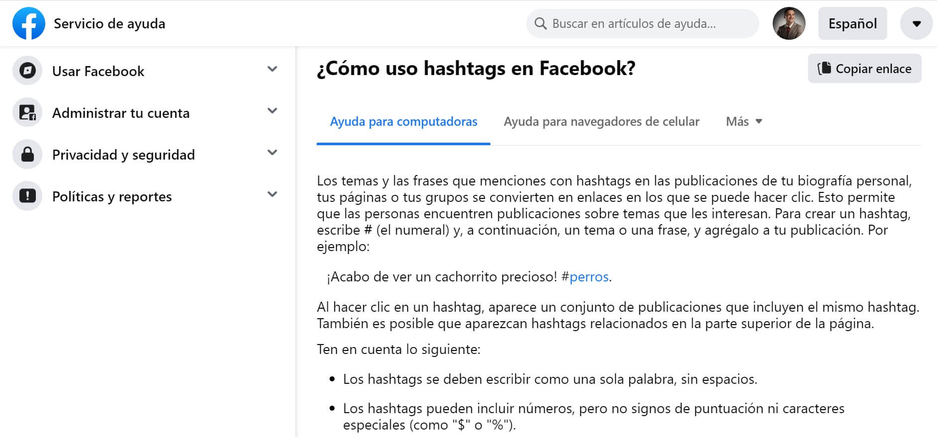 Para empezar, es importante saber qué dice la propia red social sobre el uso de hashtags en Facebook, ¿no creéis? Este es, resumiendo, el mensaje que os encontraréis en su página de ayuda: