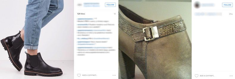 Fíjate en la diferencia entre estas dos cuentas de Instagram. Las dos empresas venden zapatos, pero hay una gran abismo entre la una y la otra ¿no? Está claro que la empresa de la izquierda gana muchos más clientes a través de Instagram (al contrario que la otra) gracias a la gran calidad de sus imágenes, que dan pie a ver más y a interesarse.