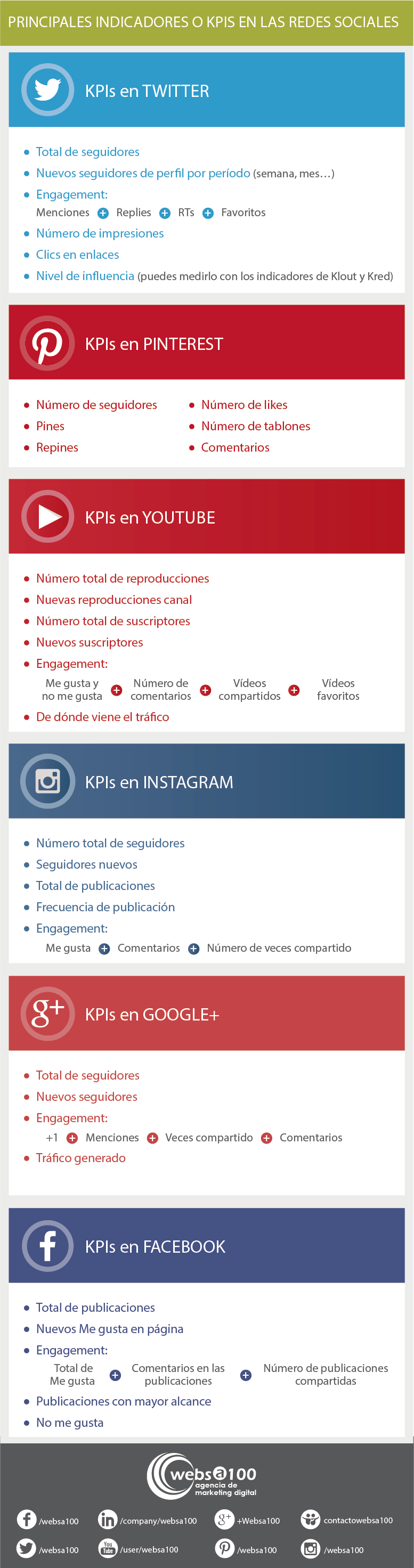 En esta infografía, te dejamos una pequeña “chuleta” para que tengas a mano los principales indicadores KPIs de las redes sociales, así podrás medir tus resultados.