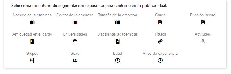 - Las magníficas oportunidades de segmentación que nos permite. Sin duda ninguna, ésta es la principal ventaja de la publicidad en LinkedIn. Nos permite segmentar de una forma muy concisa, ya que los usuarios de LinkedIn incluyen ellos mismos una gran cantidad de información en sus perfiles (siempre a nivel profesional, claro). Esto nos permite elegir entre muchas opciones para que nuestros anuncios lleguen sólo a personas que REALMENTE vayan a estar interesados en ellos.