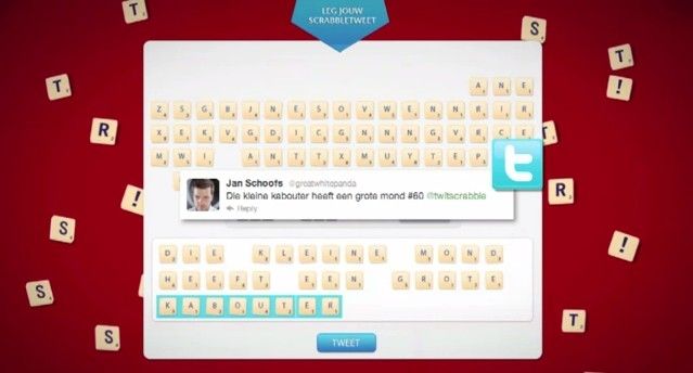 ¿Quién dijo que los juegos clásicos no se pueden adaptar al espacio 2.0.? Desde luego, esta no es la mentalidad de los responsables de marketing de Scrabble. La marca del conocidísimo juego de mesa que puntúa la dificultad de las palabras sacó al mercado un nuevo juego. Pensaron que Twitter sería una plataforma genial para llevar a cabo su campaña de publicidad en Internet. Para ello, idearon un original pasatiempo para los usuarios que consistía en crear una frase con la mayor puntuación siguiendo los parámetros del clásico juego de mesa. Eso sí, dentro de 140 caracteres.