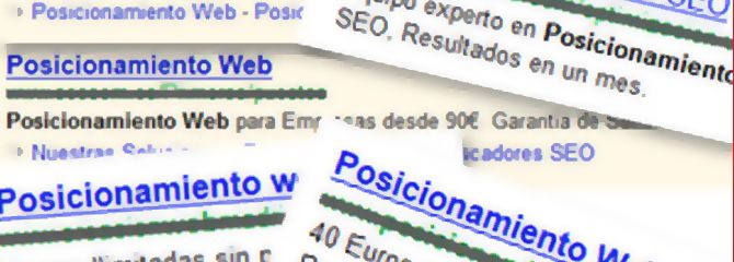 Promesas como "sitúa tu web en la primera página" (sin especificar de qué primera página hablamos ni por qué palabra clave), "por 40€ al mes garantizamos primera posición en Google", "tu web la primera en Google en un mes" son habituales si hacemos búsquedas en Google por palabras como "posicionamiento web", "seo" o "posicionar web". Podéis ver ejemplos de lo que hablamos en la imagen que acompaña a este post extraída de resultados reales en Google. ¿Promesas reales o "cánticos de sirena"?