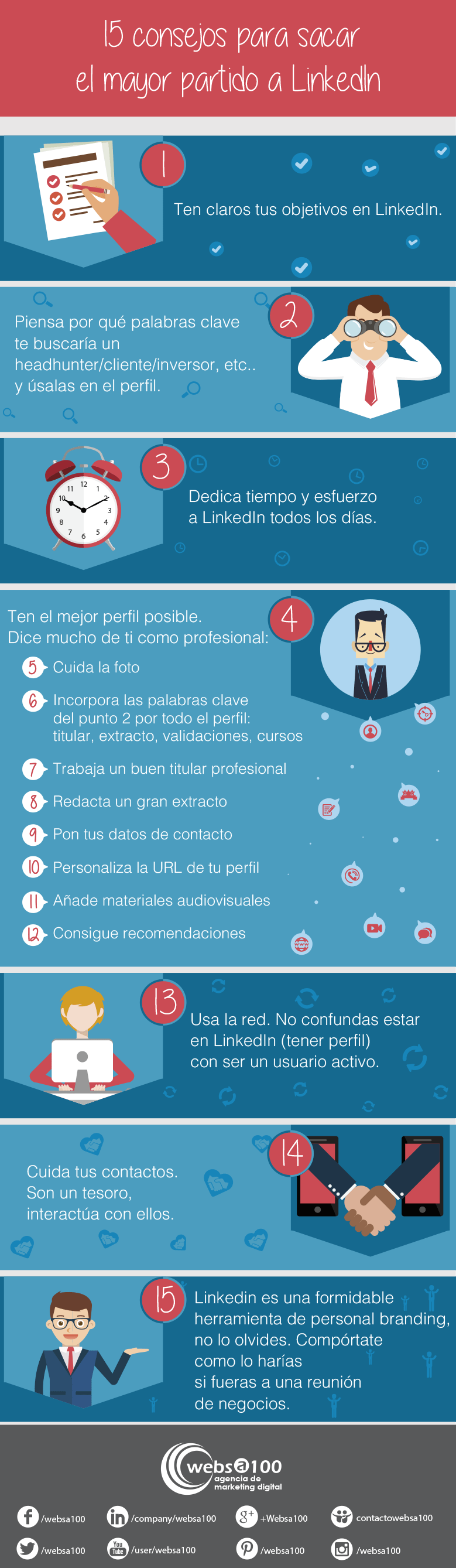 Para que no te pierdas te resumo estos 15 consejos para LinkedIn España en una infografía: