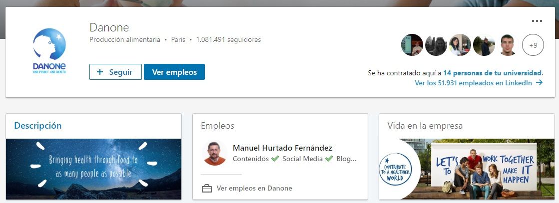 ► Por ejemplo, Danone, en cuya página en LinkedIn apuestan firmemente por valores tales como “proporcionar la salud, mediante la alimentación, al mayor número de personas en todo el planeta”.