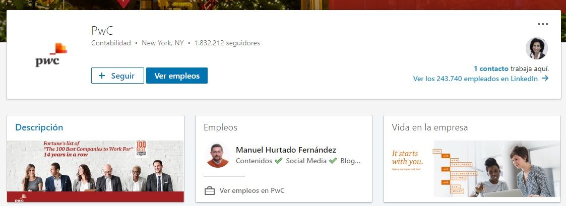 ► Continuando con las grandes consultoras, PwC tiene asimismo un lugar sobresaliente como empresa con mejor marca empleadora. Con una alta frecuencia a la hora de publicar contenidos en su página, ésta cuenta con más de 1.830.000 seguidores, unos 243.000 empleados en LinkedIn, y una sección de “Vida en la empresa” que pone en valor las oportunidades de carrera profesional que existen en esta organización.