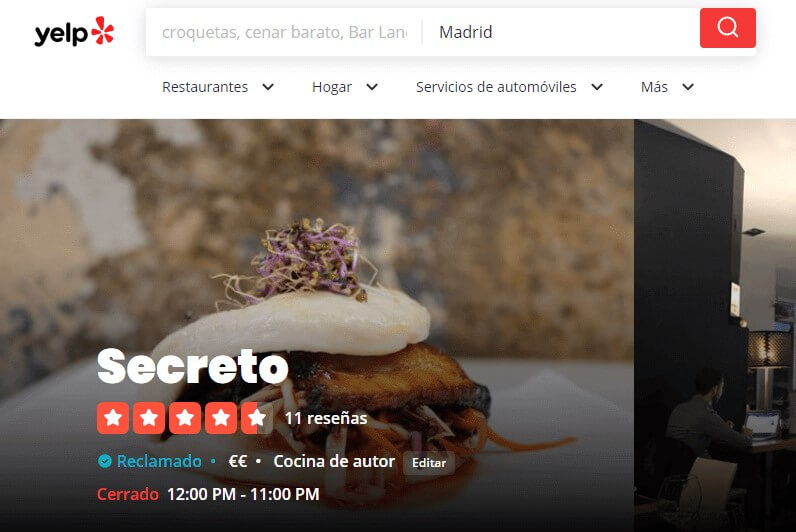 Entonces, ¿cómo puedes usar Yelp para atraer más tráfico a tu restaurante? De la misma manera que lo harías con Google My Business, pidiendo tu ficha, rellenando el perfil de tu restaurante y respondiendo a las reseñas. Para obtener más información sobre cómo optimizar tu perfil de Yelp, échale un vistazo a esta guía paso a paso.