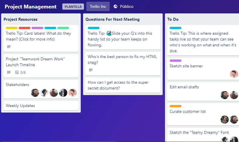 Si estás trabajando con un equipo y necesitas una herramienta de gestión de proyectos que permita a todos colaborar en las campañas, te recomendamos Trello. Puedes establecer diferentes “tarjetas” para cada campaña que estés planeando.