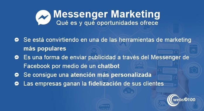 - Acostumbrados a recibir correos electrónicos a modo de promociones, el Messenger Marketing es una gran evolución. Se presenta la posibilidad de hacer publicidad de manera conversacional, dónde tanto el anunciante como el comprador tienen la opción de interactuar para conseguir un servicio más personalizado.