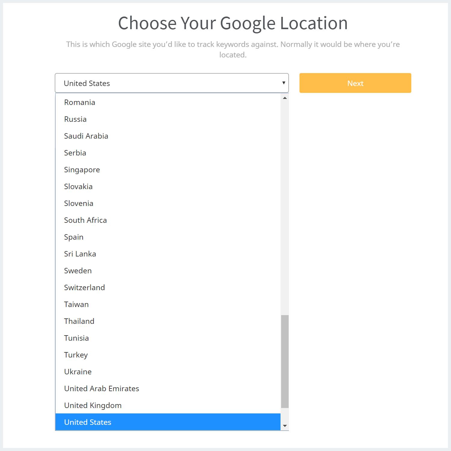 Como las clasificaciones de palabras clave pueden variar de un país a otro, la Herramienta de Palabras Clave de SEOptimer te permite elegir ubicaciones de más de 70 países.