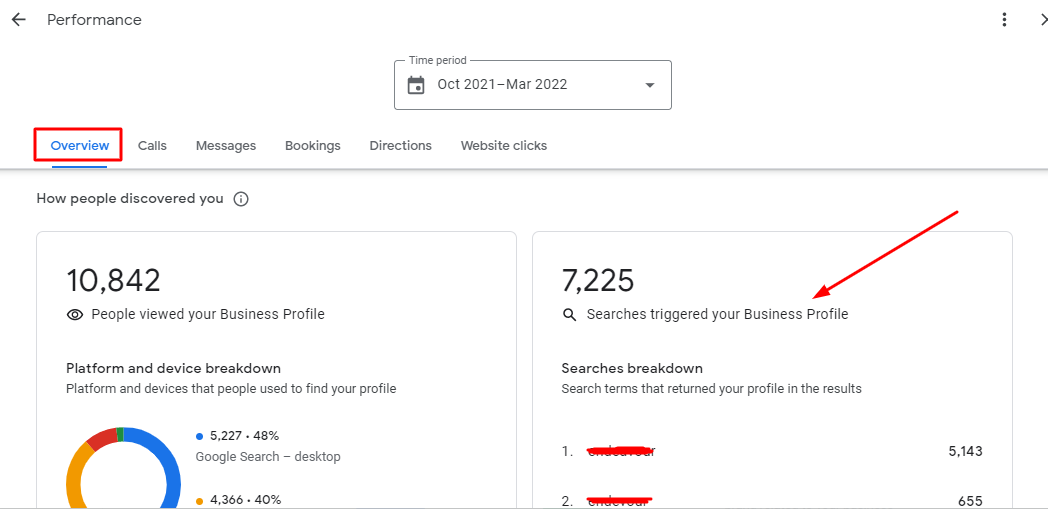 Aquí tienes que hacer clic en Overview > Searches Breakdown.