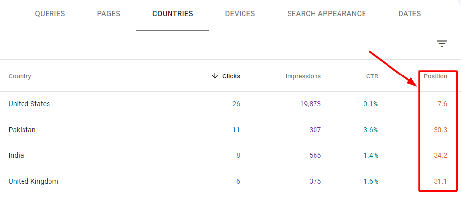 De manera similar, también puedes comprobar las posiciones orgánicas de tu sitio web en función de tu país objetivo o dispositivos.