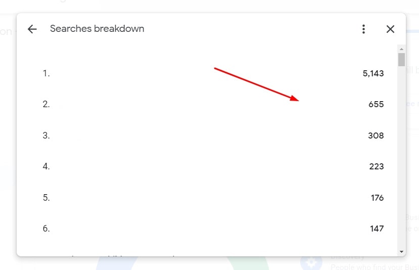 Una vez que hagas clic en el desglose de búsqueda, se abrirá una ventana emergente que contiene todas las palabras clave.