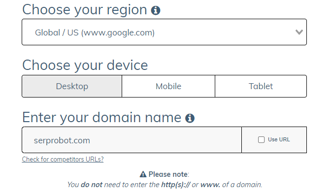 Si deseas comprobar las clasificaciones de las URL de tus competidores, también puedes introducir hasta 3 sitios de competidores.