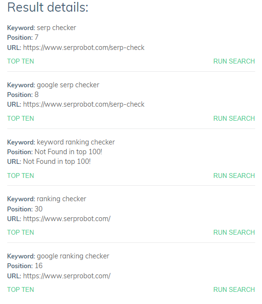 Con la ayuda de verificador SERP gratuito de Serprobot, puedes realizar comprobaciones automáticas de palabras clave y descargar informes.