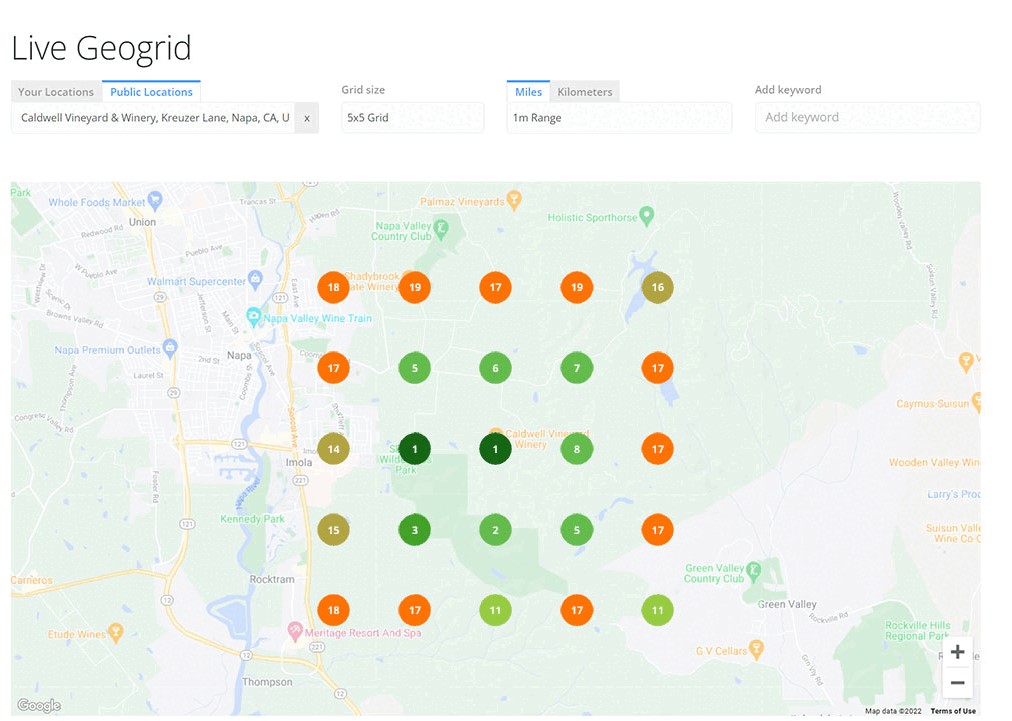 Los usuarios también pueden seguir la evolución de sus clasificaciones locales a lo largo del tiempo utilizando una herramienta de Seguimiento de Posición Local como Local Rankings. Con esta herramienta, puedes obtener una representación visual de tus clasificaciones de palabras clave locales desde varias ubicaciones físicas en tu ciudad o pueblo.