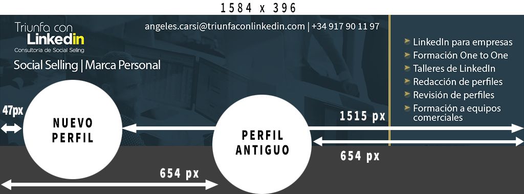 Mira esta plantilla de la imagen de fondo que compara la ubicación de la foto del perfil antiguo vs la del nuevo: