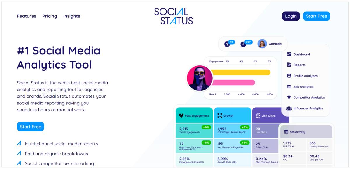 Para "publicaciones" en redes sociales, tendrás que usar el panel de "insights" de la plataforma o puedes considerar usar una herramienta como SocialStatus para ver "analíticas" de redes sociales en todos tus canales sociales.