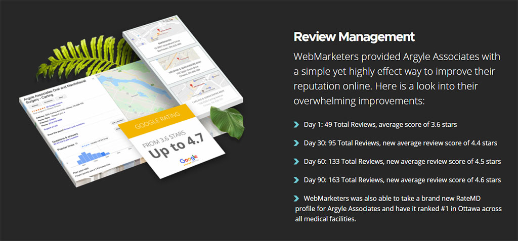 WebMarketers ayudó a Argyle Associates a mejorar su calificación de Google de 3.6 estrellas a 4.7 estrellas e incrementó su tasa de conversión al 12%:
