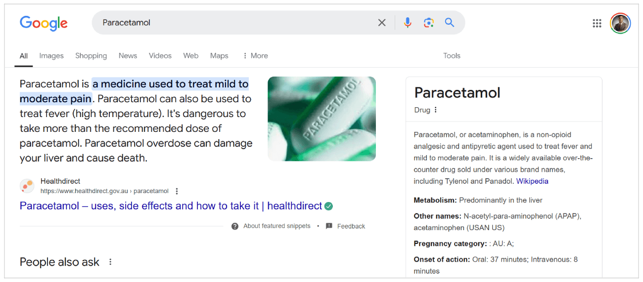 Google reconoce entidades relacionadas con la medicina para proporcionar información de salud precisa, incluyendo: