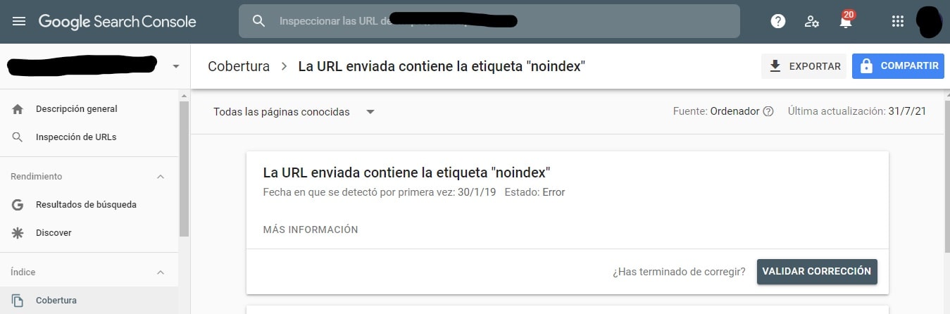 Ten en cuenta que las páginas bloqueadas aún se podrán indexar incluso si se rechazó la URL como se muestra a continuación: