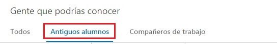 - Te aparece una página en la que, en su parte central, aparecen las invitaciones pendientes que puedas tener; y, debajo, el apartado “Gente que podrías conocer”, con tres secciones: “Todos”, “Antiguos alumnos”, “Compañeros de trabajo”.
