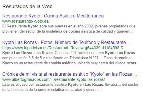 Por último, comentaros que en este artículo nos hemos enfocado en Google My Business y las búsquedas locales, pero también se puede hacer SEO local en tu página web, y deberías. Basta con tener en cuenta todas las palabras clave que estés usando, y añadirles la palabra de tu ciudad. Por ejemplo, para el caso del restaurante chino, se trataría de utilizar las combiunaciones de palabra clave con la ciudad, por ejemplo:
