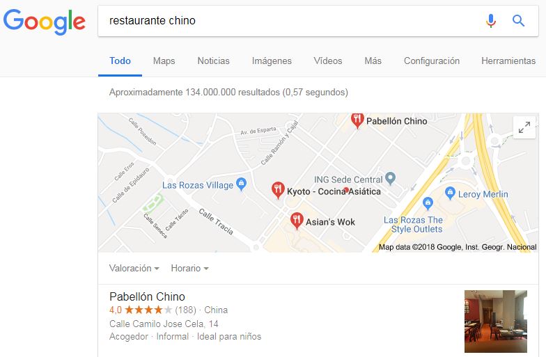 Seguramente después de ver los resultados locales que nos muestra Google estaréis pensando: ¿cómo demonios hago para aparecer el primero en esos resultados, o al menos entre los 3 primeros?