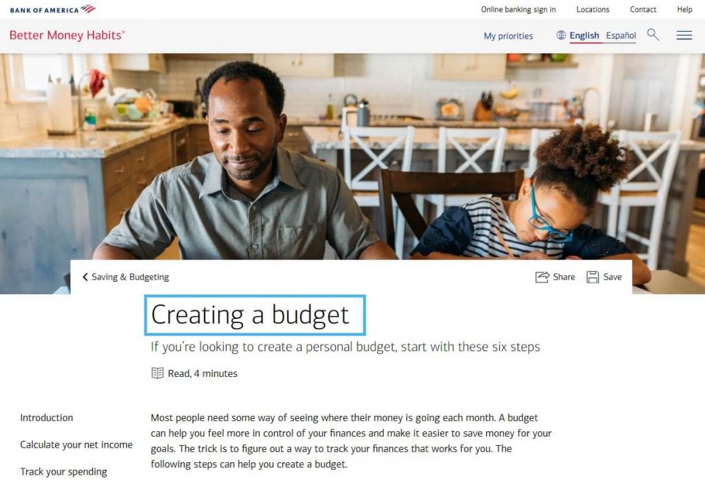 Por ejemplo, Bank of America publica muchos artículos útiles para los lectores en su blog Better Money Habits: