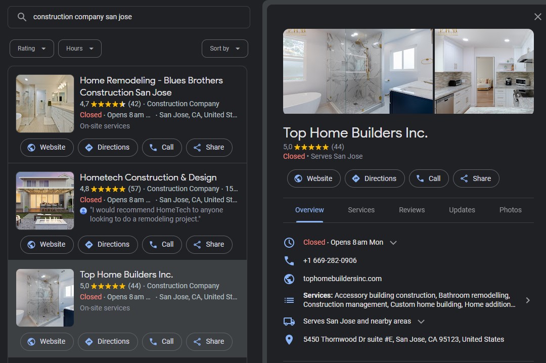 Es realmente importante que recuerdes proporcionar información comercial precisa en tu listado de GMB. Además, añade fotos reales de proyectos anteriores para que los clientes potenciales puedan ver tu portafolio de proyectos.