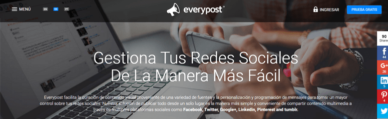 Es una herramienta muy potente para publicar contenidos en varias redes sociales. Una de sus principales ventajas es la cantidad de redes con las que te permite trabajar: perfiles de empresa en LinkedIn, Pinterest, Google+... Destaco estas tres porque no suelen estar presentes en muchas de las aplicaciones para redes sociales.