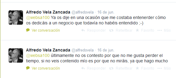 Hoy hemos sido el centro de un post del Sr. Alfredo Vela en el que nos acusa de copiar contenido ajeno. Curioso que venga de alguien cuyo blog está repleto de infografías ajenas (muchas de ellas nuestras), de las cuales se limita a hacer un simple copia y pega y, con suerte, hay una atribución de autoría si así puede llamarse al hecho de que aparezca como tal la palabra “vía”. No hay comentarios ni nada que pueda considerarse una aportación de valor. Y luego, lo difunde por las redes desde su blog generando así tráfico para vender sus servicios.