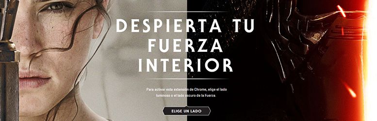 El gigante Google está en todos los “saraos” y no podía quedarse al margen del gran fenómeno de La Guerra de Las Galaxias. Pero esta vez no se conformó con un Doodle, sino que creó una aplicación llamada “Despierta tu Fuerza Interior” (ya no está disponible) que permite a los usuarios elegir unirse al lado oscuro o al lado luminoso, y personalizar, según la elección, todas las apps de Google asociadas, desde Youtube o Gmail, pasando por Google Maps, Google Calendar, Chrome, etc. Te recomiendo que la pruebes, ¡es muy divertida!