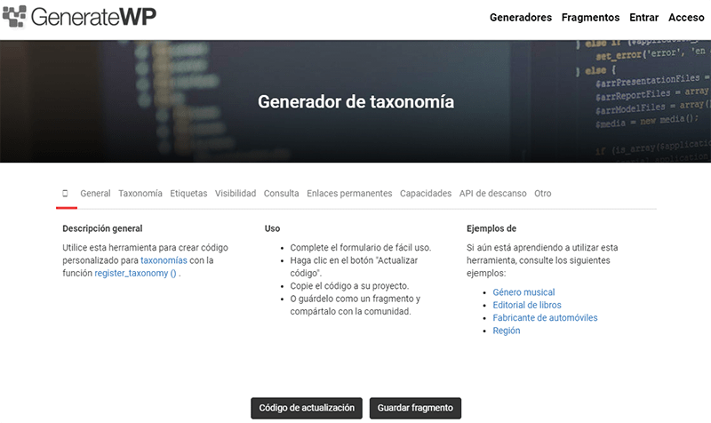 Ejemplos de taxonomía de páginas web