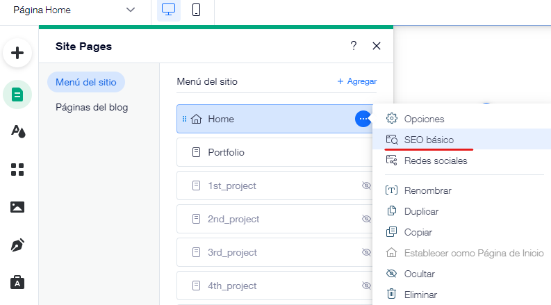 Paso 1: Dirígete a la configuración SEO de tu página.