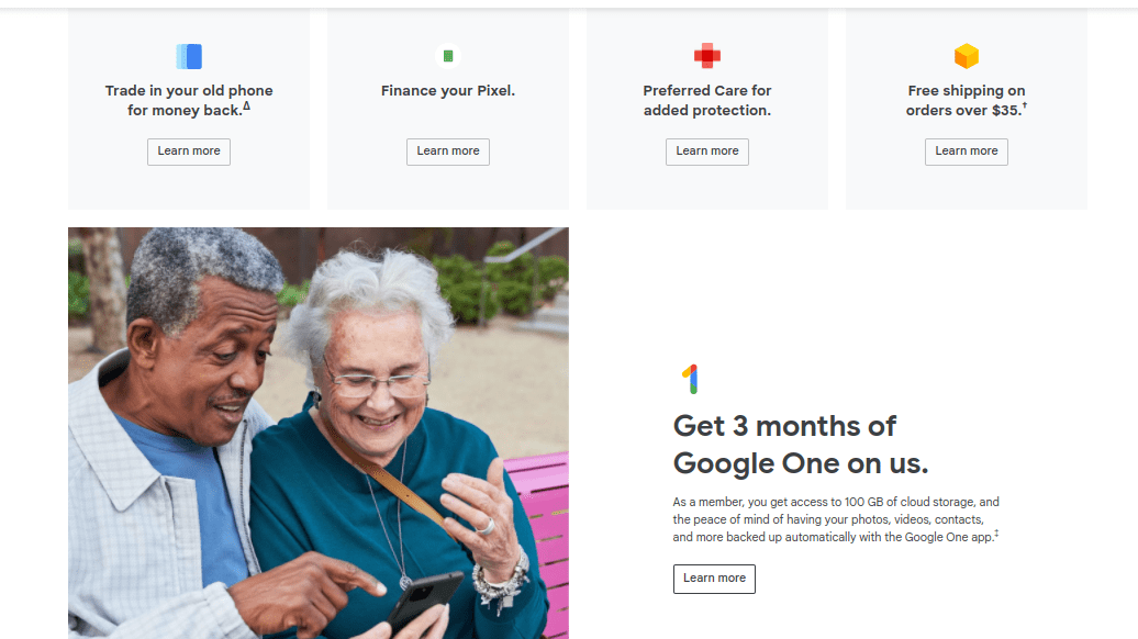 Nous pouvons voir que Google utilise ici plusieurs stratégies de prix pour promouvoir le Pixel :